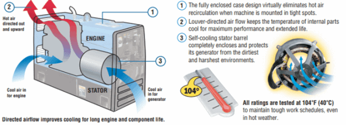 Miller’s Accu-Rated™ 11,000 watts of usable peak power is delivered for a minimum of 30 seconds. Accu-Rated means peak power is usable for maximum generator loads such as plasma cutting, Millermatic® MIG welders and motor starting. Accu-Rated peak power beats the competition’s very short duration peak or surge power. Use your peak power, it’s more than a number.